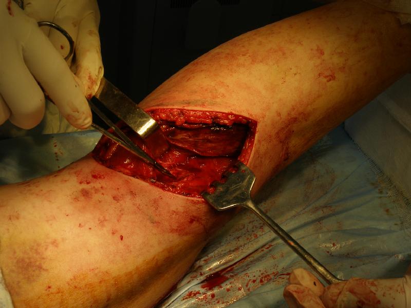 развернулся на 90 град. на 2-ух "жгутах": медиально - сухожилие