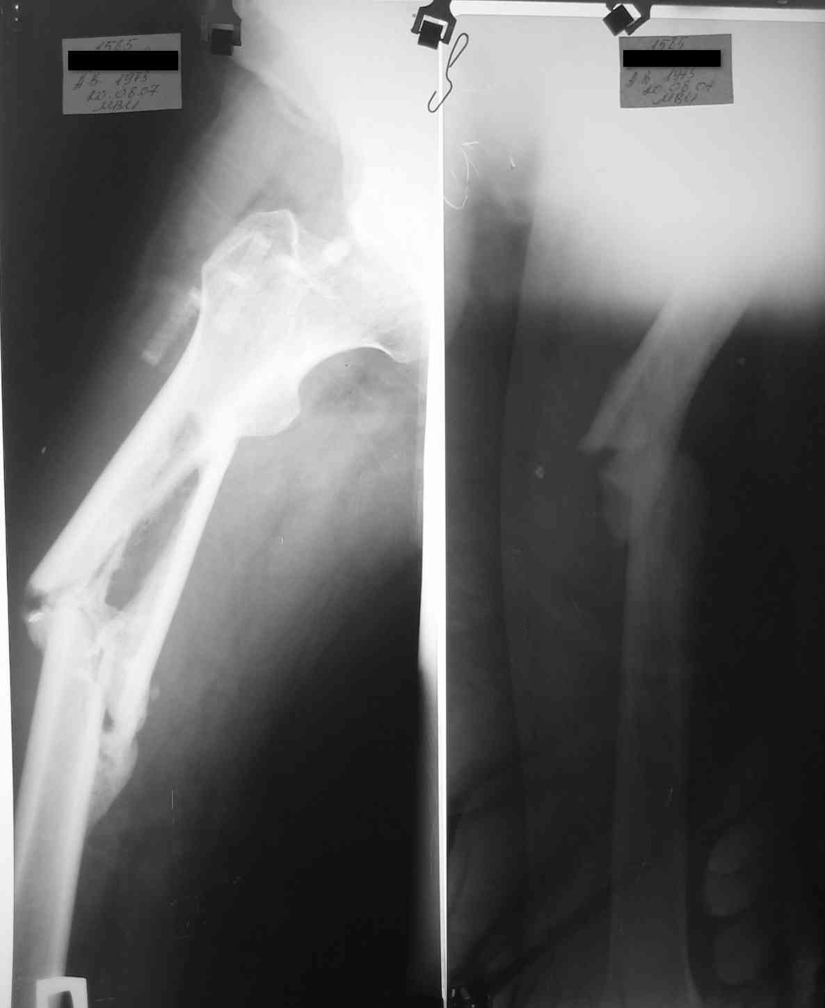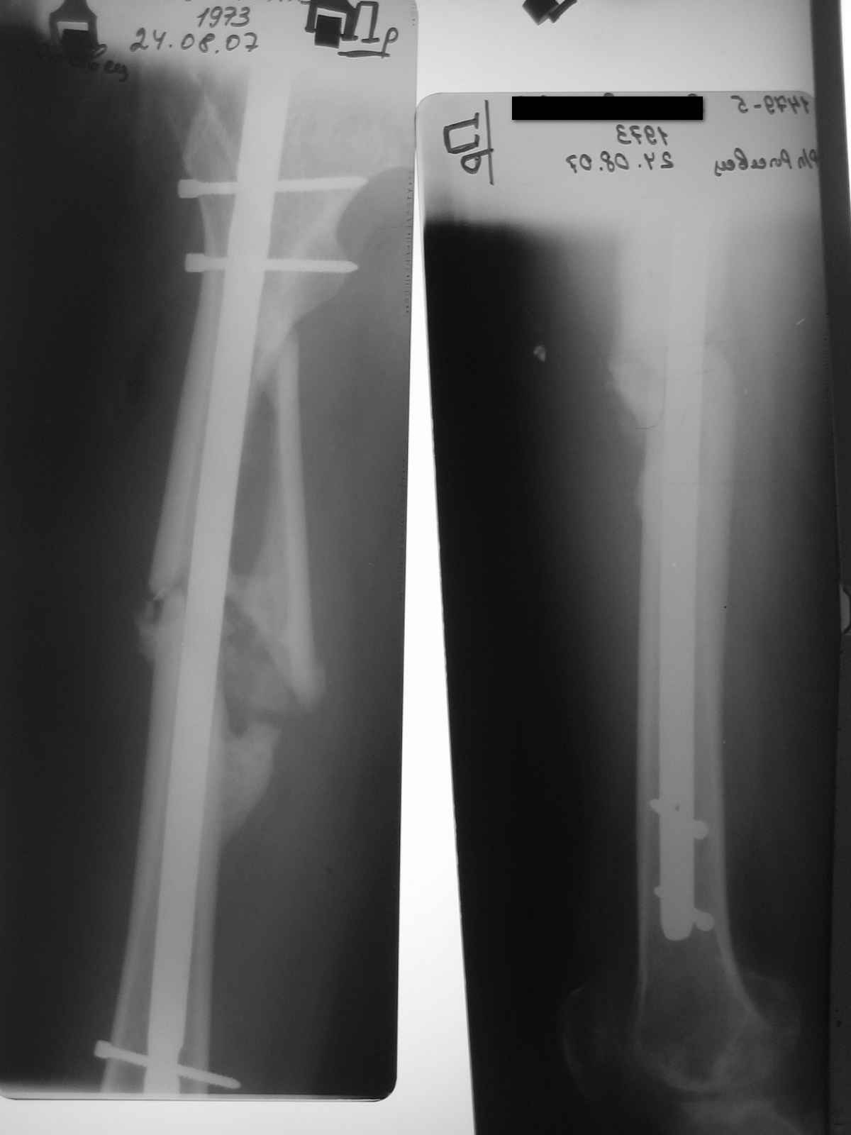 деформация. Оперирован у нас, произведен остеосинтез блокирующим стержнем ,перелом не