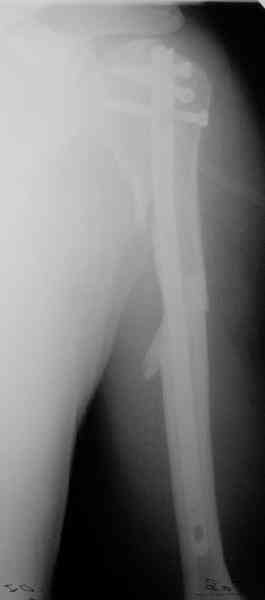 > Locking plate or cloverleaf plate thru a standard deltopectoral