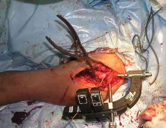 approach. The head was temporarily fixed by wires and sharp clamps.