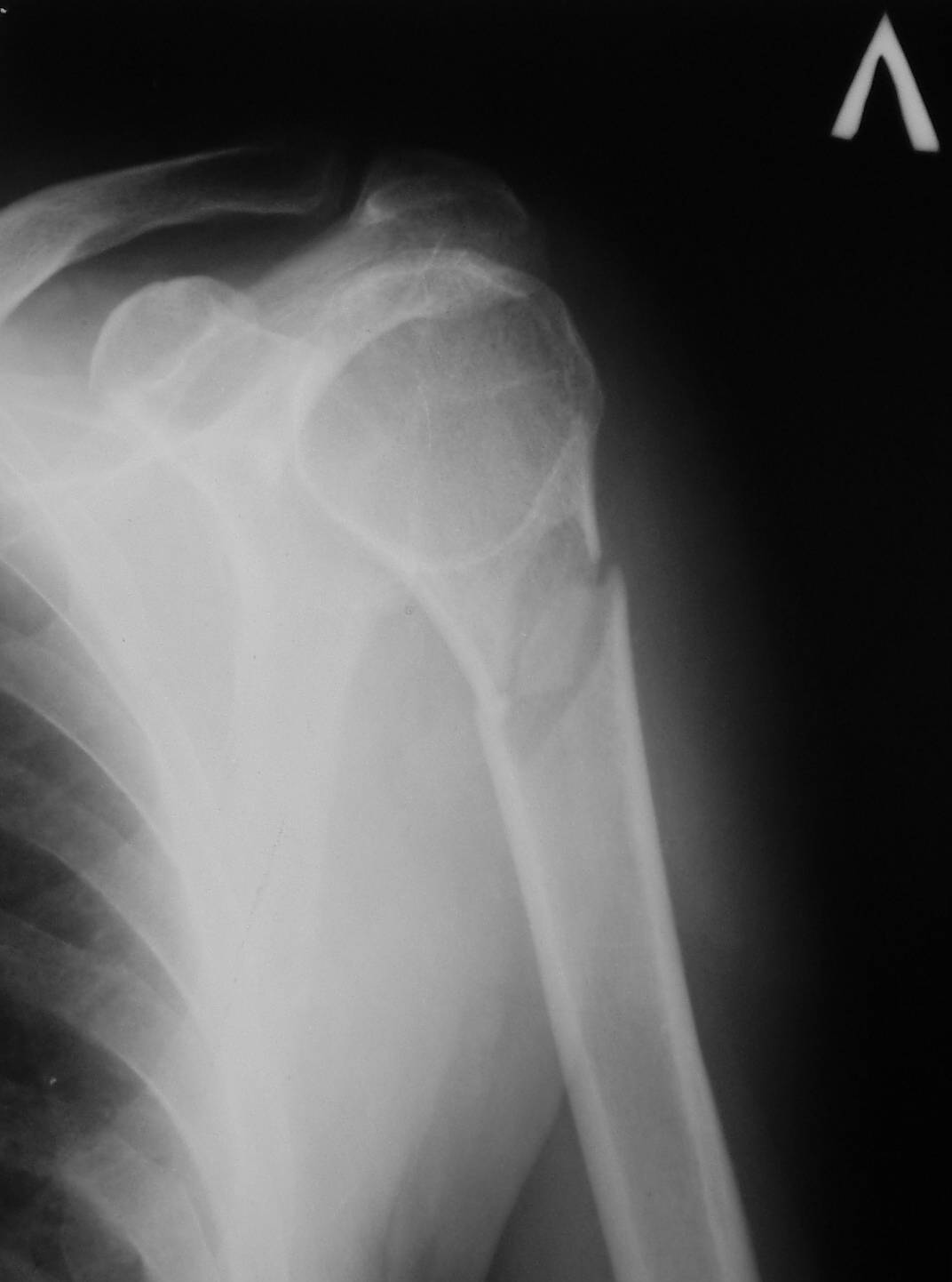 Рентгенологически патологический перелом шейки левой плечевой кости,