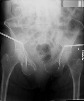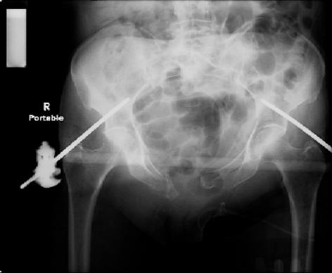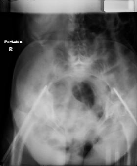 pt treated that night with I/D and supra-acetabular frame to close the ring. consideration was given for SI screws bilateraly, but given time of night and other factors decision made not to proceed.