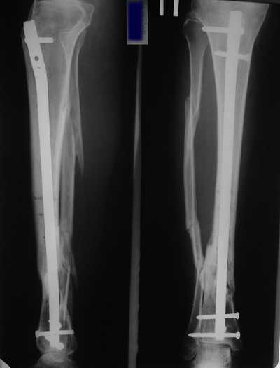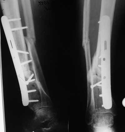 Женщина 46 лет, неудачно лечившаяся по поводу перелома голени в нижней 1\3