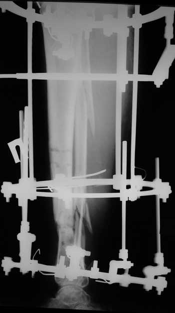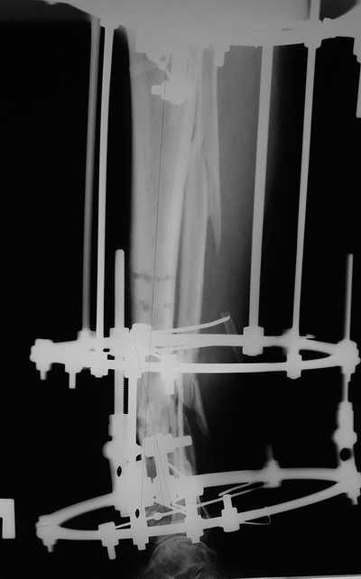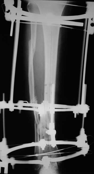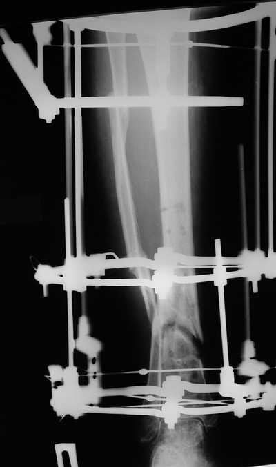 остеотомия м\б кости, аппарат Илизарова. По рентгенограммам в двух проекциях
