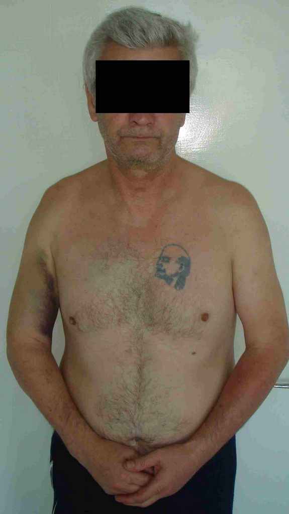 Похожий, но менее тяжелый, случай был показан в 2004 году на сайте журнала J Bone Joint Surg Am. (http://www.jbjs.org/Image_Quiz/2004/may04/iqmay04_p1.shtml).