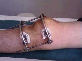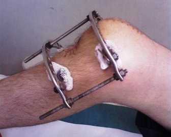 Внешная фиксация двумя спицами проведенными ч-з надколенник