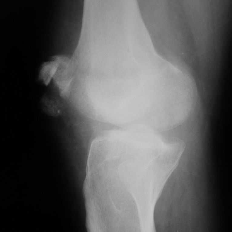 Жалобы на торчащий под кожей один из отломков, боль в этой точке.Вопрос: что делать? Первое - убрать этот отломок и на этом закончить. Второе - оставить все как есть(отломок не так уж и сильно мешает). Ждать возможного развития артроза, дальше по ситуации. Третье - подумать о протезировании надколенника.