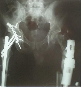 пациента на левый бок и выполнили остеосинтез вертлужной впадины.