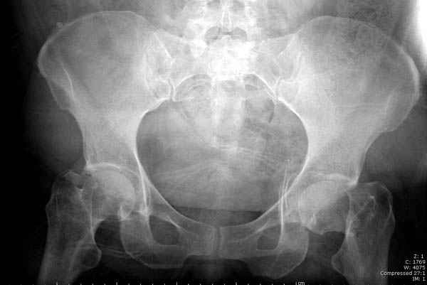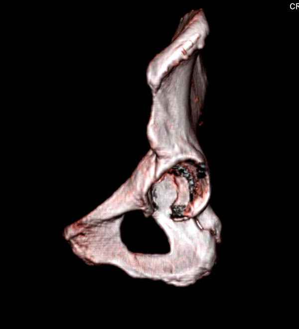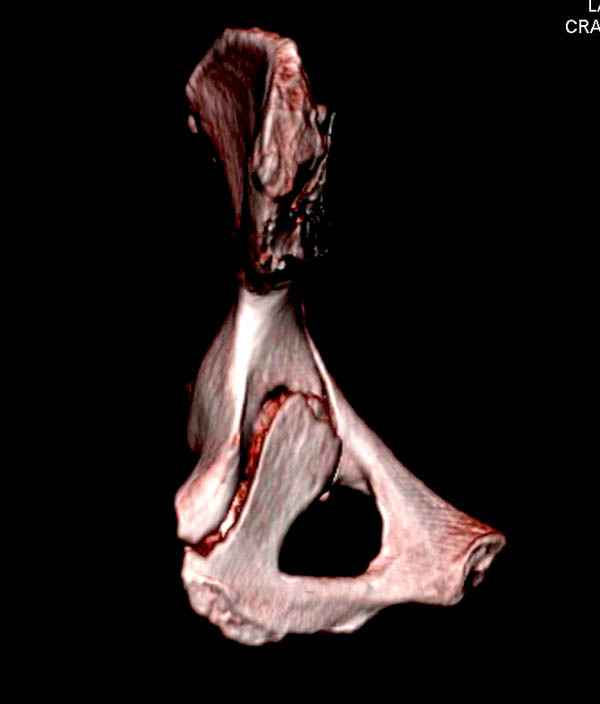 На снимке ацетабулума редко встречающийся очень низкий перелом,