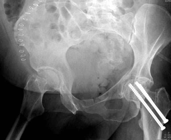 Перелом шейки смогли зафиксировать через пару дней, ацетабулум до сих