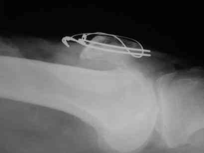 демонтировали и выполнили остеосинтез ?стягивающей петлей?. Через 6