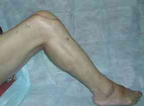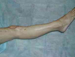 верхнем полюсе надколенника и верхней трети большеберцовой кости). Очень