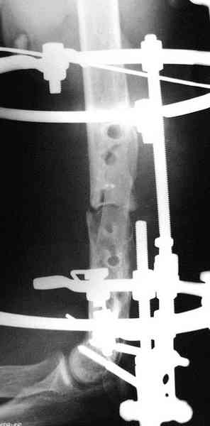 В подобном случае мы бы применили чрескостный остеосинтез. Пример - в
