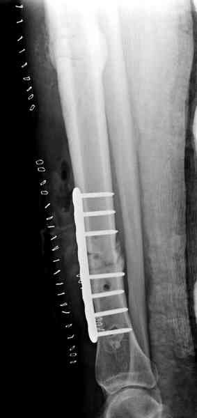 разбирали похожий случай, ложный сустав большеберцовой кости после