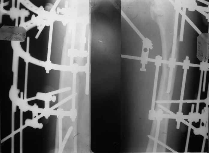 выведении длины и оси зафиксировать в аппарате дистальный отломок и