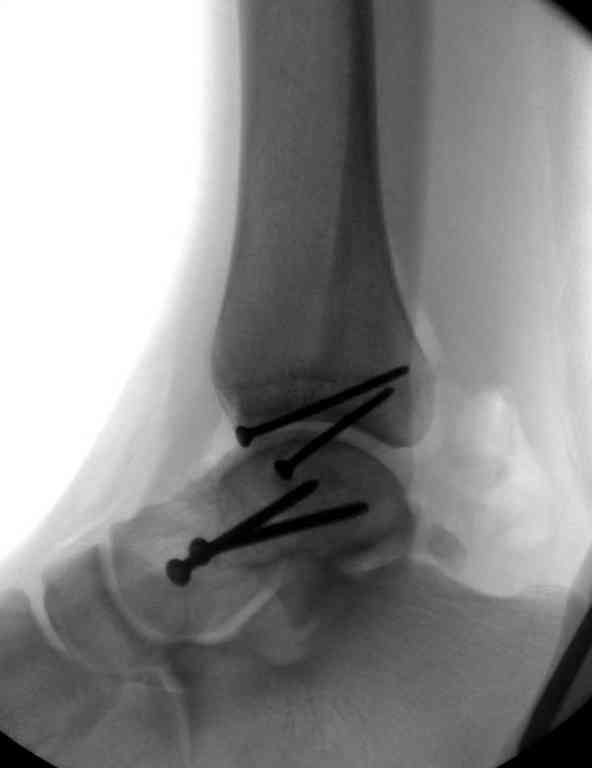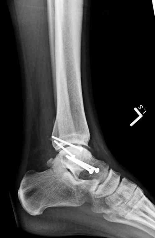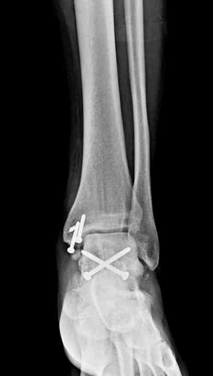 Переломовывих тарана с повреждением медиальной стороны. Через 4 часа после поступления проведена репозиция и фиксация тарана после Irrigation&Debridment. Частичное несращение медиальной лодыжки не беспокоит, вернулся к активному образу жизни. Полная нагрузка разрешена через 11 недель. Финальные снимки через 11 месяцев.
