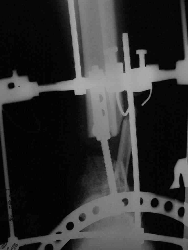 P.S Ситуация несколько осложнена тем, что наша клиника не закупает аппараты наружной фиксации, сам же больной по причине алкогольной зависимости не работает. Т.о. конструкция аппарата ограничена имеющимися деталями...