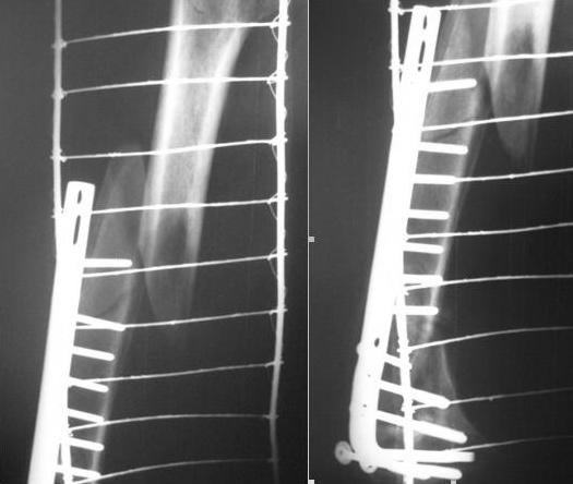 метаэпифиза бедренной кости. Выполнено МОС. На представленных рентгенограммах видно, что