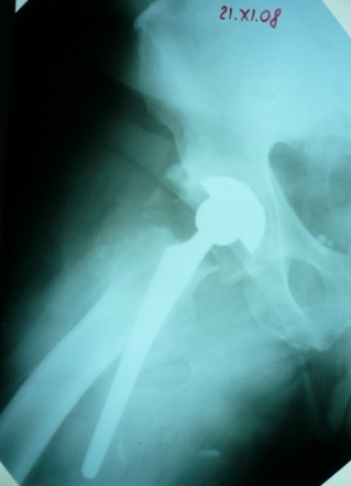 Больной Т. 56 лет, Диагноз: двухсторонний коксартроз 3-4 ст справа, 1-2 ст слева 2.10.08 выполнена операция тотальное бесцементное эндопротезирование. Использовался наружный доступ, положение на боку. Операция протекала без особенностей.