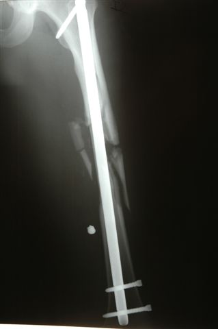 Единственно что наблюдал - замедленная консолидация, судя по серийным Рг граммам. В приведенном случае прии вялом мозолееобразовании сделал ошибку, решившись динамизировать гвоздь - перелом сросся со значительным укорочением бедра - повторная хирургия по удлинению бедра и проксимальным запиранием, больной мобилизован и вполне доволен(кстати заметить больной с ВИЧ инфекцией - изначально скомпрометированный иммунитет и несмотря на это, всё прошло без костной и мягкотканной инфекции.