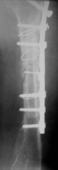 - фиксация пластиной с угловой стабильностью с ревизией нерва;
