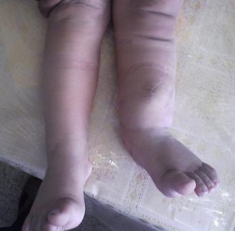 Родители родственники, родился 5 кг, по счету третий, ребенок упитанный (как говорят педиатры - лимфатик), левая нога укорочена на 2,5см. функция коленного и г/с суставов сохранена.