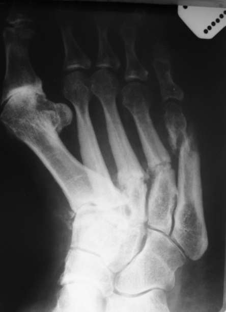 головки 1 плюсневой кости. Кожа над поверхностью не изменена. признаков гипертермии и