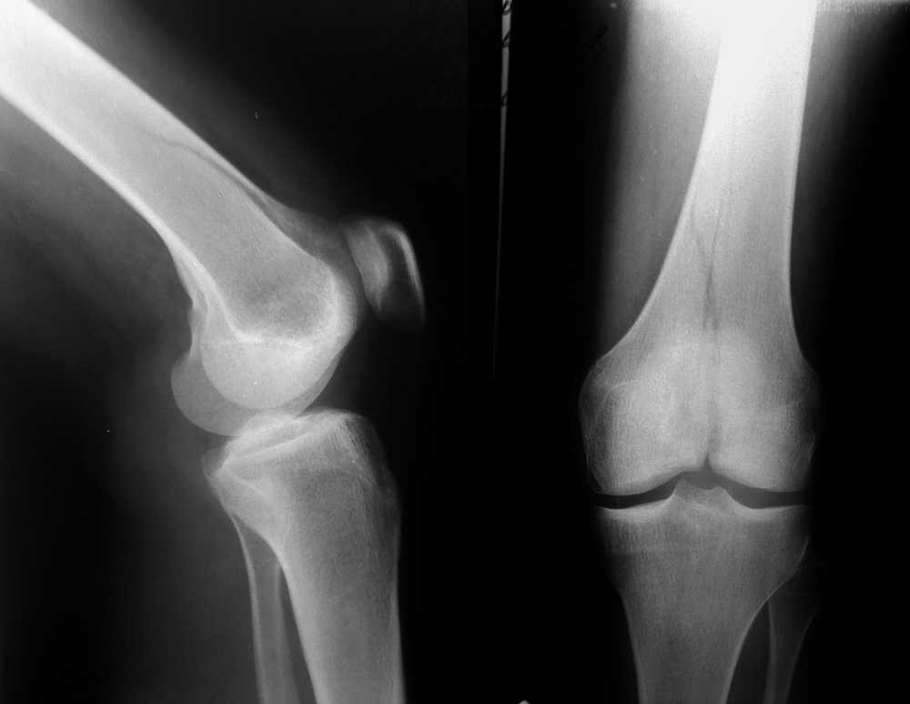Женщина, 24 года, травма в быту, при падении с лестницы на согнутое колено. Кожные покровы в