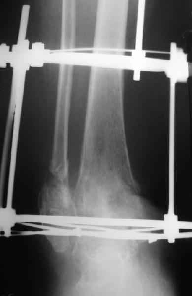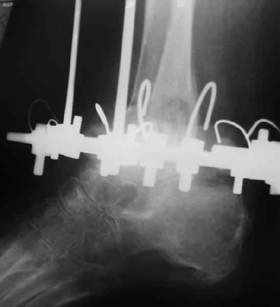 Пациентка 56лет поступила через 5,5 мес. после открытого 2-х лодыжечного перелома,