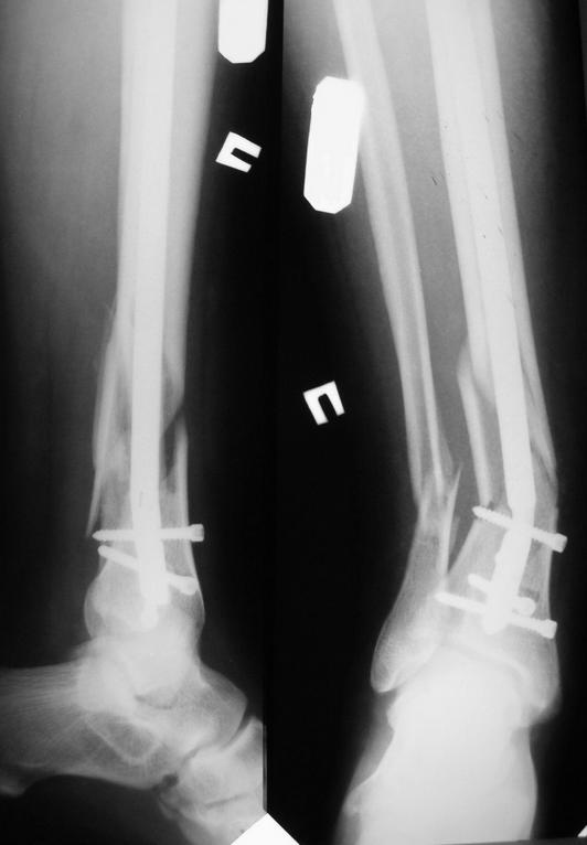 Больной 36 лет, Ds: оскоьчатый перелом костей правой голени в н/3 со смещением. 3.02.09.