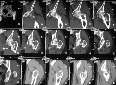 Доброкачественная опухоль (ОБК?, энхондрома?), по данным RS. Дополнительно произведено КТ. Наложено скелетное вытяжение.