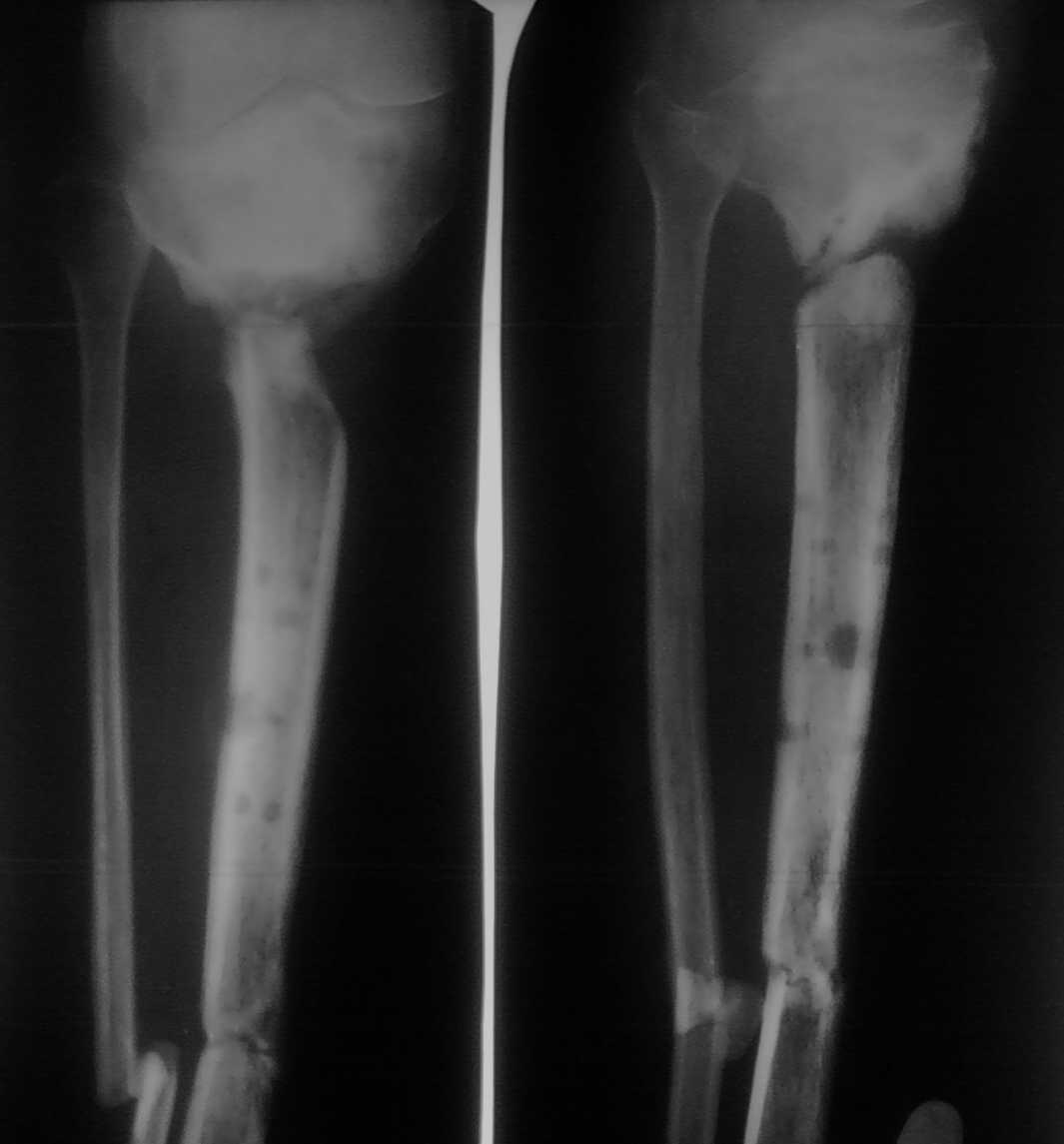 Больной лечится уже год. Первоначально был открытый перелом дистальной части костей голени