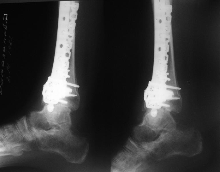 остеосинтез пилона. На сегодня ходит без дополнительной опоры, хромая