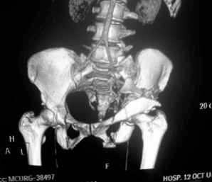 41 yo female , fall from 10 meters five days ago. Hemodynamically unstable on admission treated by angio and embolization and skeletal traction, with no external support. No associated injuries.