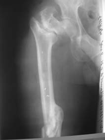 > боль в вертельной области; ходит без костылей, полностью нагружая
