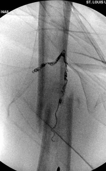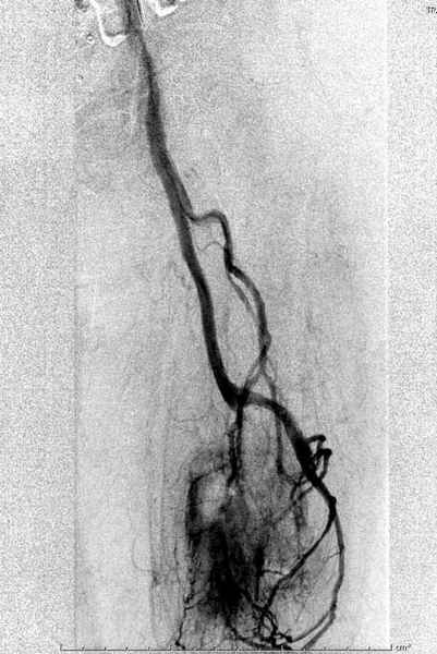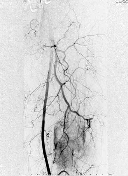 Для предупреждения кровотечения во время рассверливания, за день до операции провели эмболизацию сосудов питающий метастаз. http://radiology.rsnajnls.org/cgi/reprint/150/3/673.pdf (7-11, 12-15-16)