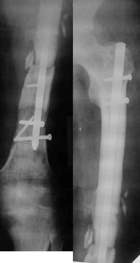 нижней трети бедренной кости, укорочение н/к 5 см. Выполнялся