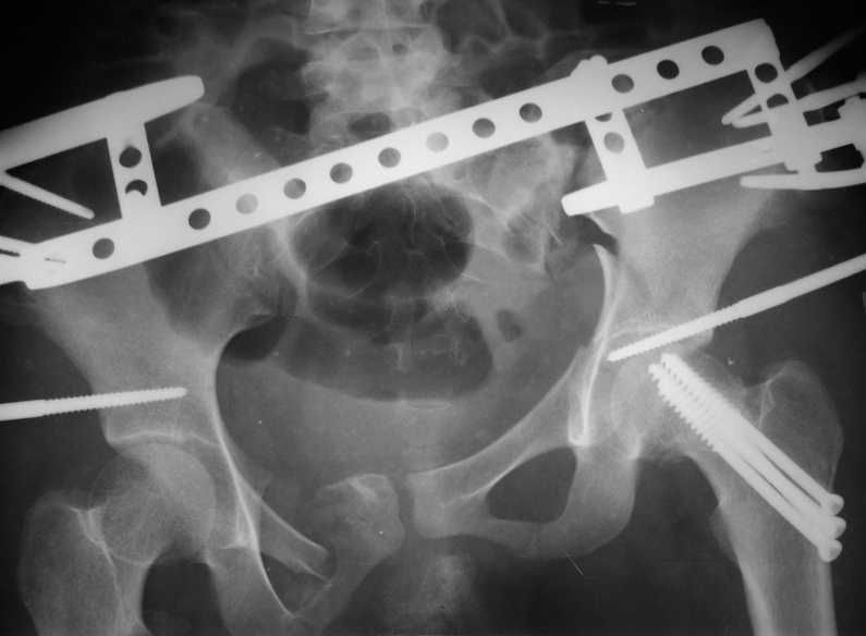 pelvis. The trauma was 1,5 year ago. Now she has the pain in the hip