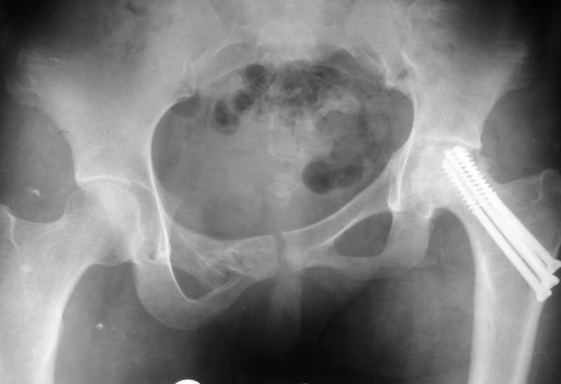 Остеосинтез винтами перелома шейки бедра слева и оскольчатого перелома