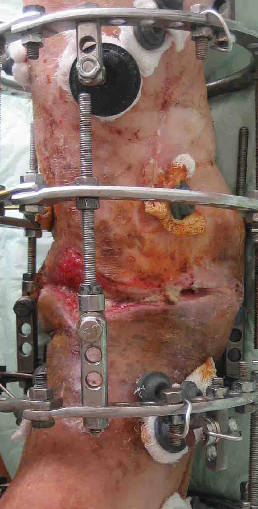 На операции резекция 8 см, внешний остеосинтез,одновременное сближение