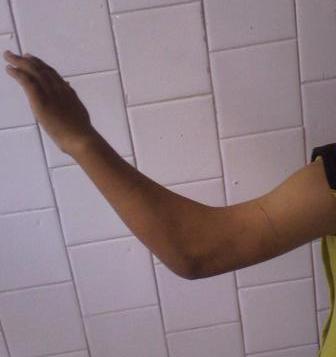 локтевых суставов, больна с рождения. Оба локтевые суставы в положении сгибания под углом