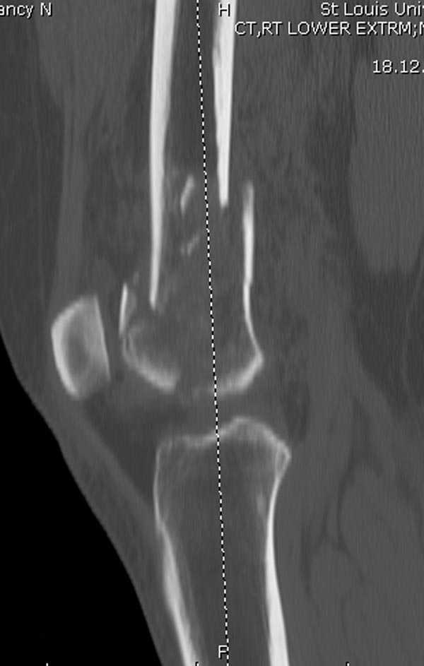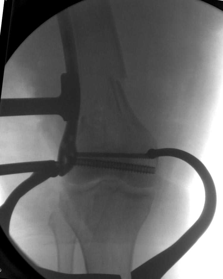 Бесспорно, предлагаемый ретроградный метод имеет свои преимущества, но имеется опасность при манипуляции интрамедуллярным гвоздем расколоть мыщелки.