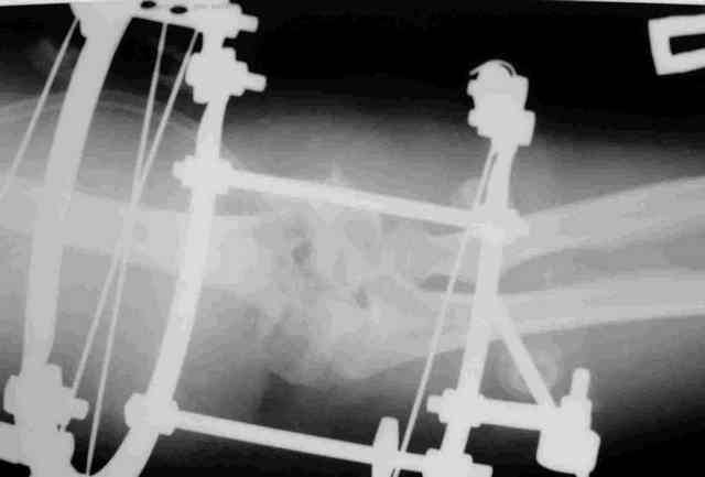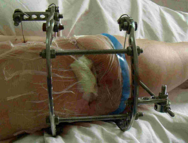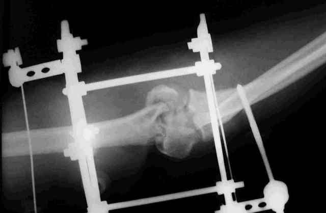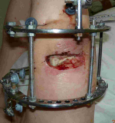 вторичная гнойная хирургическая обработка раны, стабилизация перелома аппаратом,