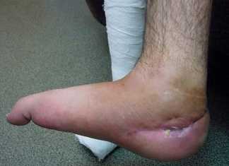 пяточной области. Отделяемое серозное. Конечность не нагружалась.