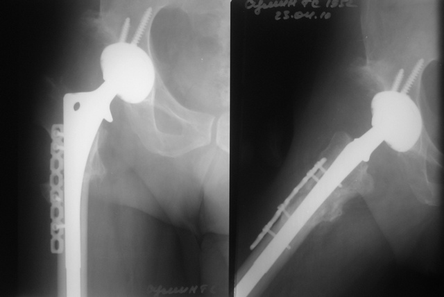 Выполнена одномоментная коррекция деформации, эндопротезирование DePyu Pinnacle-AML.Пластинка с деротационной целью. При использовании ножки с прямоугольным сечением, думаю можно и без нее