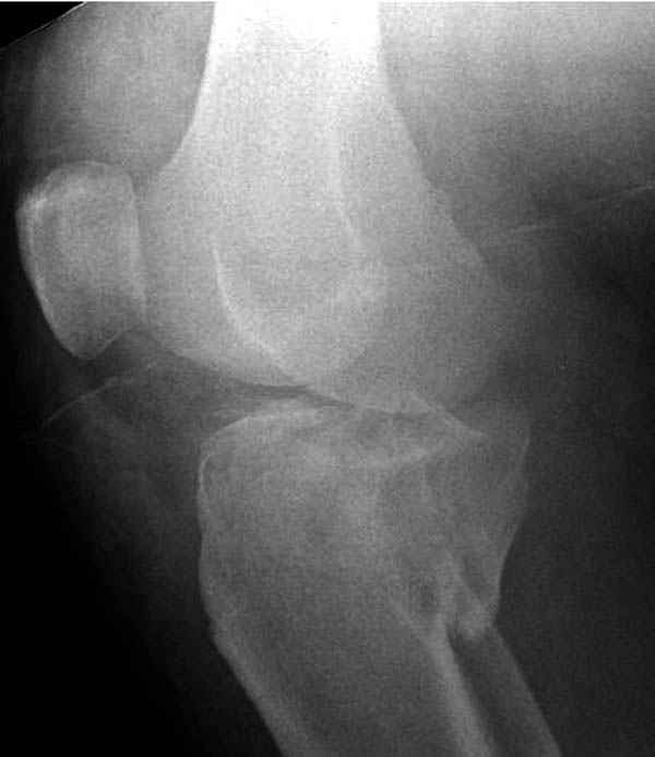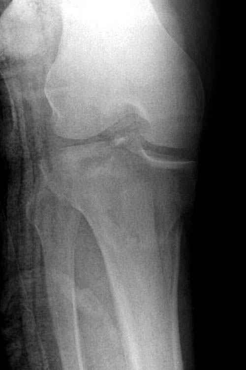 Представленные снимки не информативны, нужны отдельные качественные снимки коленного сустава и голени без ротации.