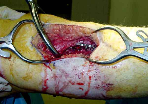 При сложных переломах тибиал плато для своего рода Damage Control мы иногда применяем поэтапную тактику. Сперва оперируется одна сторона, а потом после рекондиции мягких тканей окончательный этап.