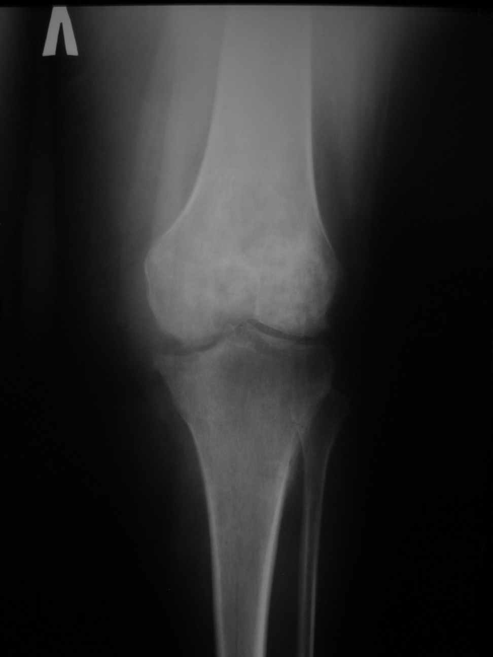 В госпиталь переведена женщина, врач, 1970 года рождения, 110 кг. 26.10.2009 г. в левый коленный сустав однократно введен Дипроспан по поводу деформирующего артроза. 02.11.2009 развился гнойный гонит. Полость сустава дренирована, проточно-промывное дренирование, наложен спице-стержневой КДА. Развился остеомиелит бедра и голени. Демонтирован КДА. По стихании гнойного процесса и заживлении ран начато реабилитационное лечение.