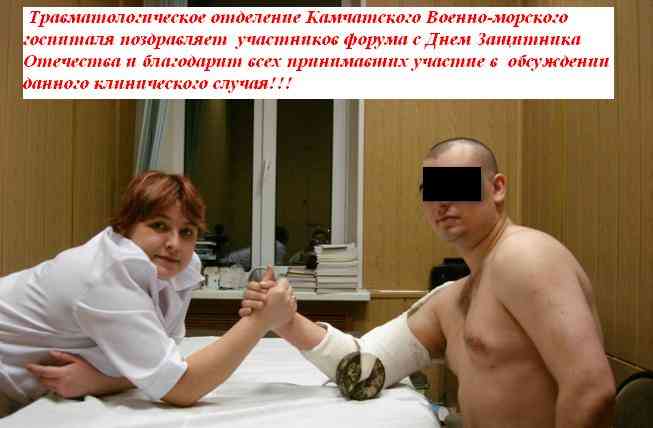 Огромное спасибо всем принимающим участие в дискуссии. Вначале отвечу на поступавшие персональные вопросы: 1. обстоятельства травмы - соревнования по армрестлингу (от себя замечу, что у военных нередкая травма в последнее время! На мой взгляд это связано с вовлечением в это дело неподготовленных людей - командирам нравится, т.к. в плане реквизита намного легче организовать чем традиционное перетягивание каната...). 2. в отношении провокационной составляющей - она присутствует, но лишь в той степени в какой любое инициирование дискуссии несет в себе элемент провокации... 3. про актуальность консервативного лечения - мне кажется это актуально всегда и при любой локализации если врач владеет методом, например, часто наблюдал великолепные функциональные результаты консервативного лечения переломо-вывихов голеностопных суставов... Тут только надо помнить, что "консервативное" это тоже лечение (контроль, тяги, перекладывание повязок), а не просто накладываем гипс и через энное время говорим, что не получилось и берем на операцию.