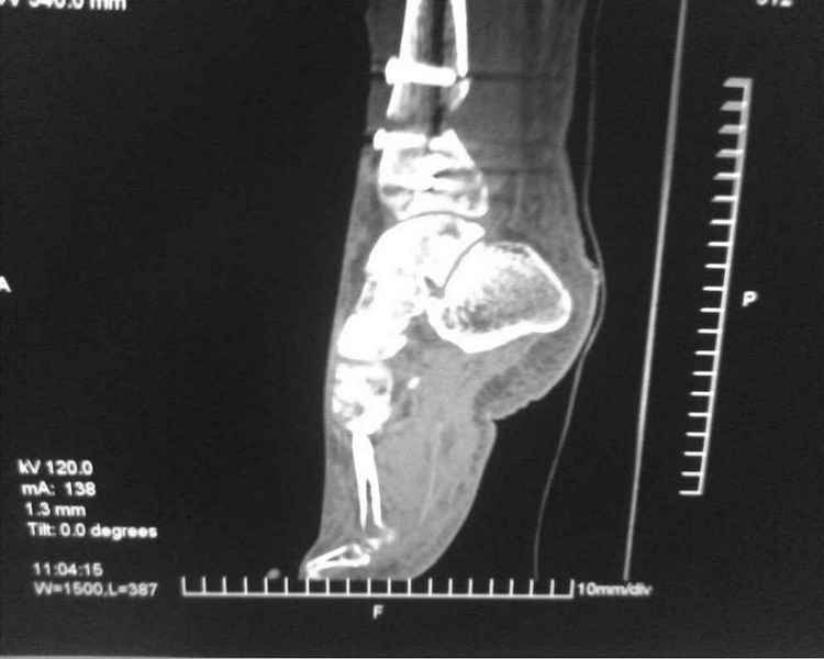 выведения стопы из эквинуса и динамизации штифта. Но из-за наличия гранулирующих ран и